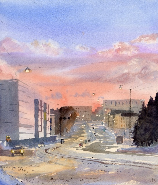 Watercolour paper 300g/m2, White Night and Winsor & Newton watercolours